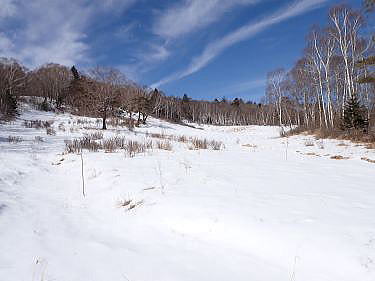 今シーズンの大雪で困っている地域の方々には申し訳ないのですが、乙女高原に、今シーズン初めての本格的な雪が降りました。この冬、今まで雪どころか雨もほとんど降らなかったので、心配していました。草原の中はノウサギの足跡がいっぱいでした。
