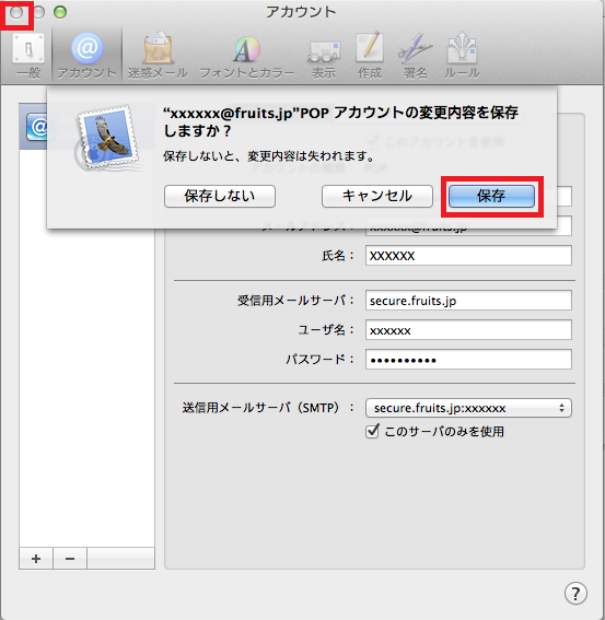 STEP5:アカウントの種類をPOP、メールサーバ名、等を入力します。