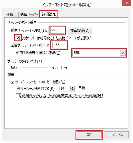 STEP8:「詳細設定」タブのポート番号等の設定を以下のように設定します。