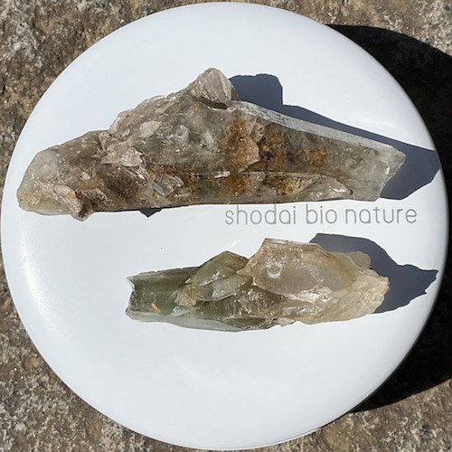 この産地では扁平にならずに、普通の水晶の様にしっかりとした六角形である場合が多い。