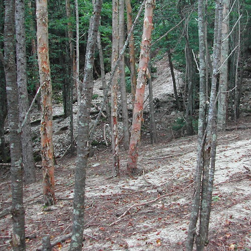 水晶が探索されたのは随分と昔の事であるので、試掘跡のほとんどが普通の森に帰っていて、