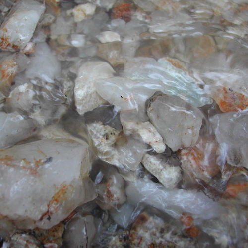 こんな沢はどうだろう? 石英だらけで、透明度もある石も見受けられる。