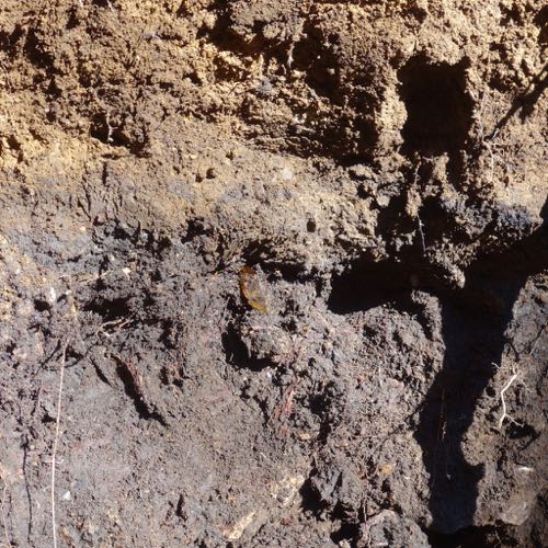 上の層よりも下の黒っぽい層の方が、有機物が多く含んでいるように見える。