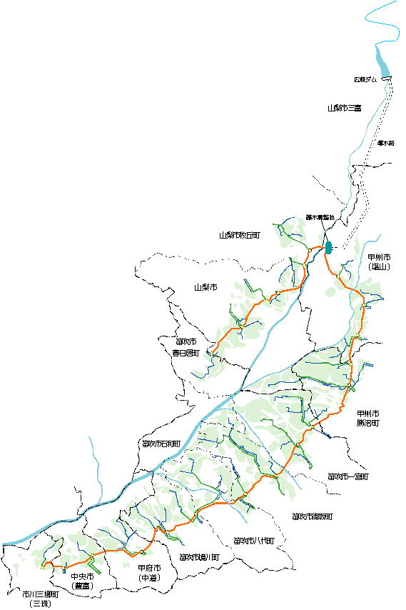笛吹川源流から広瀬ダムに集められた水は、地中のパイプラインを通り農業用水として笛吹川沿岸土地改良区の受益地に運ばれていきます。 平成20年6月4日、環境省により笛吹川の源流である西沢渓谷が「平成の名水百選」に選定されました。 食の安全がさけばれる中、名水という称号を頂き、今後もミネラルを含んだ良質な笛吹の水を安心とともに皆様にお届けいたします。