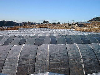 雨除けハウスのビニール掛けのまえにも
