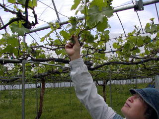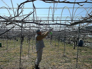 長くのびた枝を切り整えて、葡萄の芽吹きをそろえます。