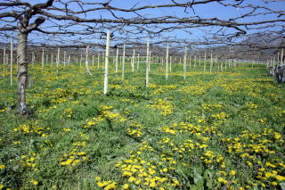 4月上旬;露地巨峰畑にはタンポポが咲き乱れてのどかでした。