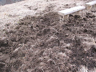 | 草原の遊歩道のすぐ脇も,こんなに掘り返されていました。今年の夏,草花たちはちゃんと花を付けることができるでしょうか? |