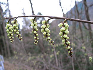 | 林道の途中,キブシの花が咲いていました。これでも花です。 |