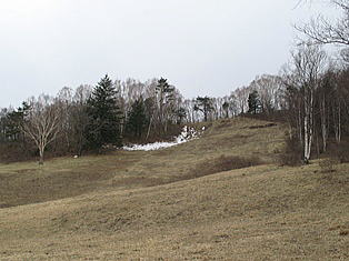 草原に残された「えぼじ」です。冬の間のハタネズミのトンネルの跡らしいのですが・・・
