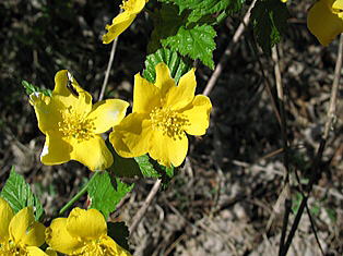 | ■ヤマブキ 林道脇にたくさんあり,やまぶき色がとても目立つ。(2007.4.30撮影) |