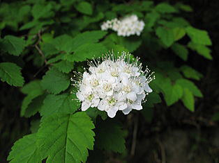 ■アイヅシモツケ 庭木としてよく目にするコデマリに似た感じ。おしべが長い。(2007.5.13.撮影)