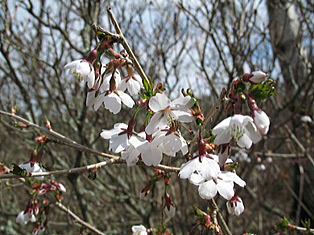 ■フジザクラ 写真だと分かりにくいが花がソメイヨシノの半分くらいの大きさ。マメザクラとも言う。(2007.5.13.撮影)