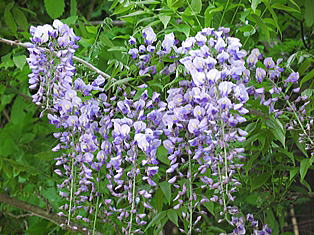 ■フジ 林道で見かけるが,里のものよりずっと遅く,5月下旬に花が見られる。
