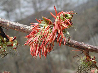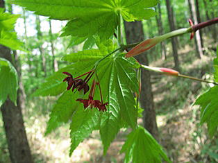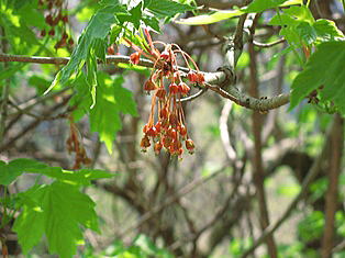 ■ハウチワカエデ 名前の通り,うちわみたいな葉のカエデ。花は赤く,下向きで,マルハナバチが来ているのを見たことがある。