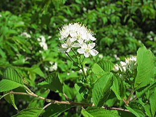 ■ミヤマザクラ 小さな花がかたまって咲くので,サクラのようなコデマリのような感じがする。(2007.5.27.撮影)