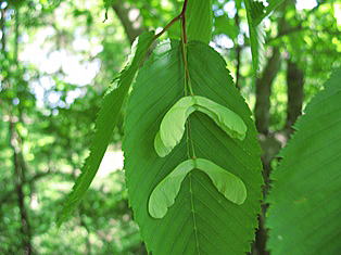 ■チドリノキ 葉の形はクマシデやイヌシデにそっくりだが,これでもカエデの仲間。この実の形が動かぬ証拠。(2007.5.27.撮影)