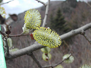 ■バッコヤナギ ヒガラやコガラといった小鳥が花粉だらけになって,ついばんでいる姿をよく見る。早春のマルハナバチも集まる。(2006.4.30.撮影)