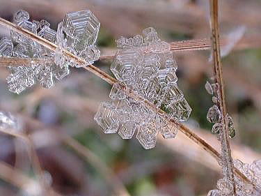 自然観察交流会で乙女高原に行きました。で、見つけたコレはなんだと思いますか? 草の茎についた霜です。まるで雪の結晶のようです。霜も雪も、元々は水なのですから、似ていて当たり前ですかね。