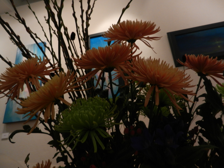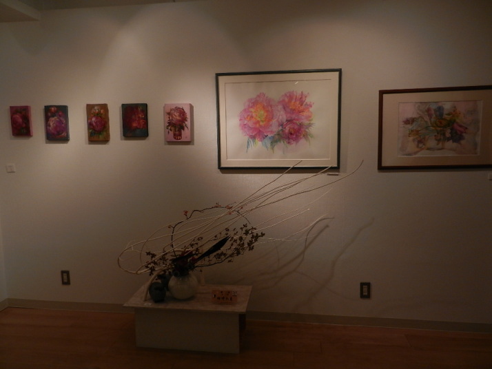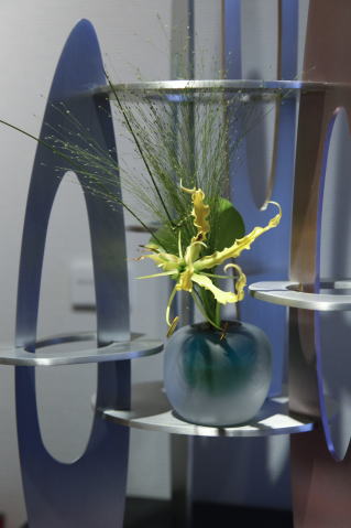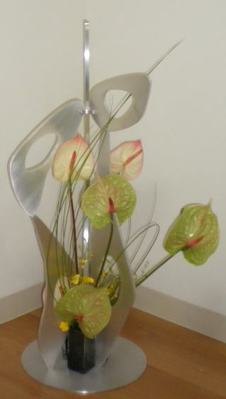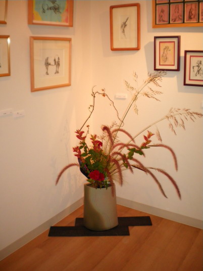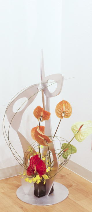 自由美術協会会員立体部の小野田勝氏の作品に生けました。