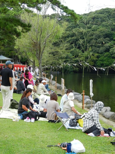 2月に行われる「節分会」弓を池の四方に放ち魔を除ける。最後に豆を撒き、その中に当たりくじがあるらしく参拝者が数多く訪れ賑わう