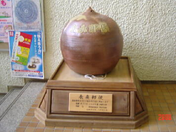 最焼き上がったタイムカプセルは市民会館に運ばれて10年間はここに置くという事でこの中には皆の思い出の手紙、封筒が入っている。 |