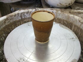僕も体験だけでもと思いやらせて頂きました。中心へ置くのが難しくて中心へ置いてもらいながら形を作ってみましたが難しいです。大きめに作ろうとしていたビールカップもいじっている間には小さくなってしまいマグカップ位になってしまいました。