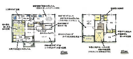 「皆様一人一人に一つ一つの家づくりをさせていただきます」 同じ家は見たくない! 個性派の為の家づくりをめざして、あなただけのオリジナルデザインの家を提供します。 そして、価格に対して透明性があるように、「女の家」・「男の家」の2 プランを生み出しました。 間取りや価格面で近い方をお選びいただき、お客様の土地や予算に合わせた家づくりを建築家と共に築きあげていってください。 全てが自由な発想から始まる家づくりを目指していますので、どうぞ個性派の家づくりを楽しんでください。