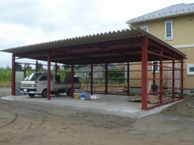 倉庫、車庫、ブドウ園アーチ制作、鉄骨螺旋階段、ストリップ階段、手摺、架台等の加工から、古くなった鉄骨部分の補修・補強工事も致します。