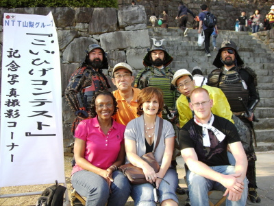 | 日時 : 4月11日(土)午後2時~午後7時半 場所 : 甲府駅前の特設ステージや駅周辺 ゲスト : 横田基地のアメリカ人(基地関係者とその家族) ゲスト人数 : 約80人 ボランティアガイド人数 : 17人 ガイド内容 : ゲストでガイドを希望する人達を小グループに分けて、各ボランティアがその小グループを担当しました。活動的なガイドボランティアは、武田神社や甲府城に行ってガイドを行いました。駅前での甲州軍団出陣式や軍団パレードは、ゲストにとって迫力と珍しさがありとても喜んでもらえました。県が主催した、観光ガイド研修の成果が発揮できたと思います。 参加者一言感想 : ・ すごく楽しかった。今後もこういった機会が増えるといいと思った。 ・ 暑くて大変だった。今回の機会で、今後もっと勉強が必要だと気が付いた。 ・ ボランティアなので、気楽に楽しもうと思いました。そして、お互いに楽しめたと思います。 |